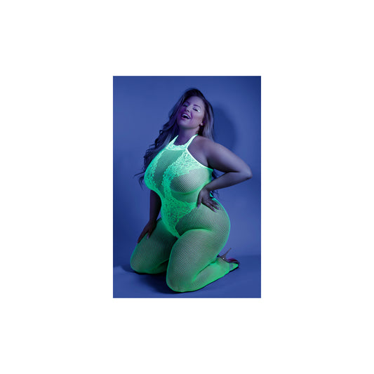 Moonbeam Neon Green Bodystocking - Queen Size Sheer One-Piece