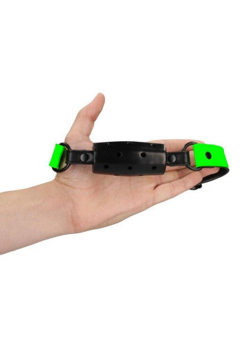 Ouch! Glow-in-the-Dark Cylinder Gag β Neon Green with Adjustable Strap