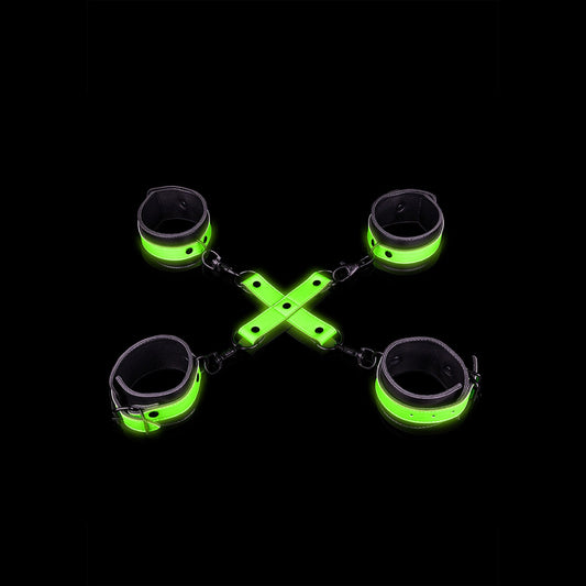 Ouch! Hand & Ankle Cuffs With Hogtie Glow In The Dark