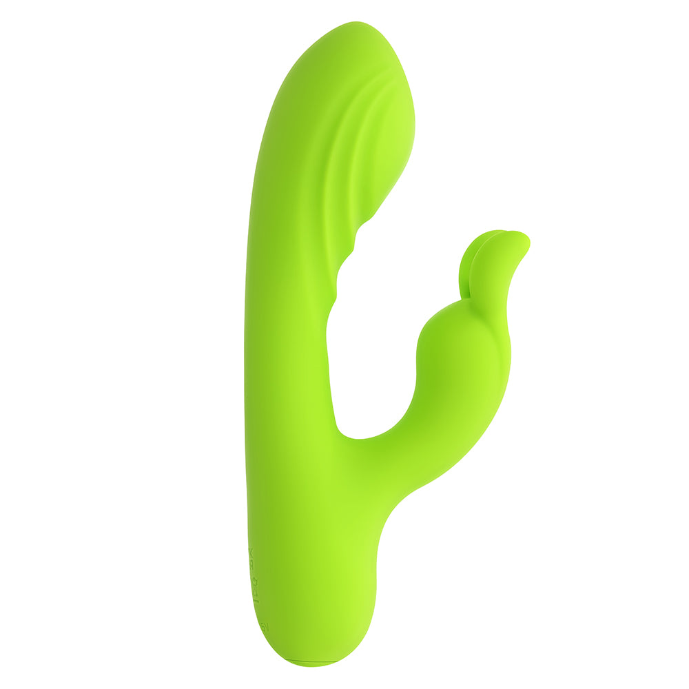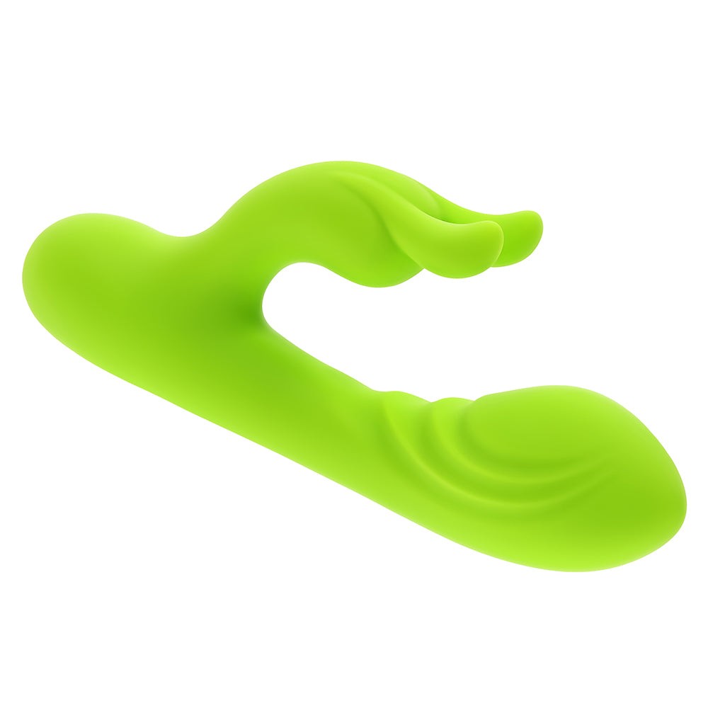 Get nightclub play-time vibes with Brat Bunny, the electric green rabbit vibrator that delivers a steady beat of pure pleasure. Two powerful motors - one in the textured chubby G-spot head and one in the bunny-ear stimulator – work together in unison for a dual experience that’s as gentle or crazy-intense as you desire. Choose the rhythm you want as the toy follow your movements with its flexible, floppy shaft. Features: 10 vibrating speeds & patterns Insertable length 4", Insertable diameter 1.47" Made from phthalate & latex free silicone USB rechargeable, cable included Height: 6.38”, Depth: 2.65” Width: 1.47" Waterproof