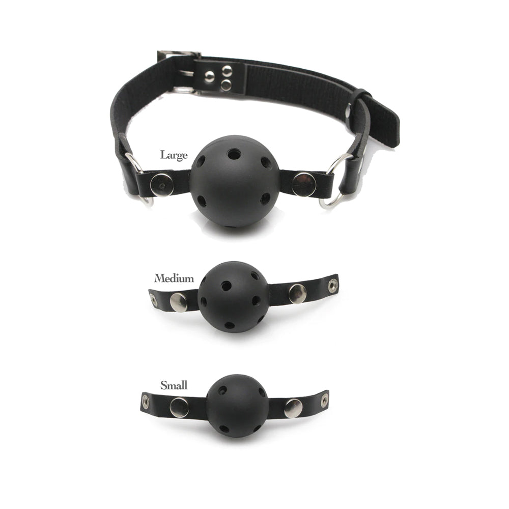 Don't say a word! The Ball Gag Training System is perfect for beginners who are new to being gagged, yet versatile enough to satisfy a pro. The 3-gag training system allows you to start with a small gag and gradually work your way up to the larger one - and go from mild to wild as you progress! Each gag is interchangeable using the snaps, made from non-toxic plastic and fitted with holes to make breathing easy. The sturdy black vinyl strap easily adjusts to fit most sizes, giving you instant control over when, and how often, your lover speaks. You'll teach your partner the meaning of submission in no time at all - remember practice makes perfect! -3 Interchangeable Breathable Ball Gags (S, M, L) -1 Adjustable Vinyl Head Strap -Holes for Easy Breathing -Free Satin Love Mask