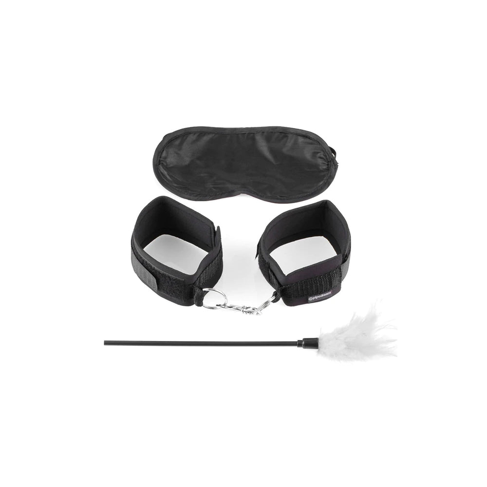 Share a little fantasy with your lover using our Sensual Seduction Kit! Change your routine and bring a little spontaneity and an element of surprise and anticipation into the bedroom. Includes: First Timer's Cuffs Fantasy Feather Tickler Satin Love Mask