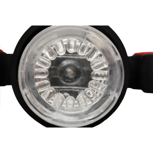 Take your pleasure to the next level with the Advanced Turbo Max Masturbator, featuring spinning, thrusting, and suction capabilities! The easy-grip handles allow you to adjust settings with ease, while the textured nubs inside the snug, elastic tunnel provide a thrilling massage for your shaft. With 9 thrusting and rotation settings, plus 9 auto suction options, you'll be transported to unforgettable ecstasy. The clear, detachable cylinder and sleeve make cleaning a breeze, and it’s compatible with water-based lubricants. Recharge with the included USB cable and enjoy splashproof fun with its IPX5 rating!