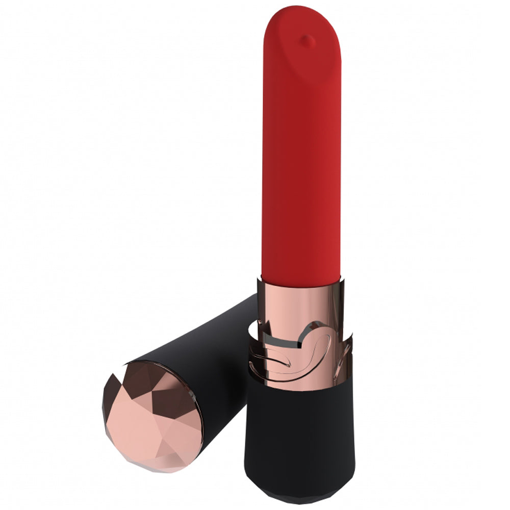 From the Loveline International, Milan Collection, is a miniature marvel of pleasure. This concealable lipstick vibrator features 10 functions and a sleek, discreet design. Crafted from body-safe silicone, it is waterproof for versatile play. Like all Loveline products, it comes with a 1-year warranty.