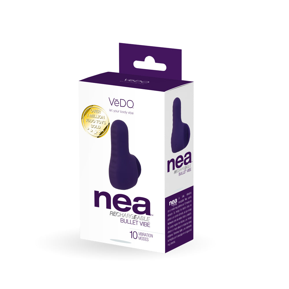 NEA boasts an extremely powerful motor with 10 vibration modes. The uniquely designed handle lends itself to effortless control as it easily fits between your index and middle fingers. The silicone ribbed body and shaft offers added pleasure for all your hot spots. Whisper quiet and completely submersible, this vibe makes water play oh so fun.