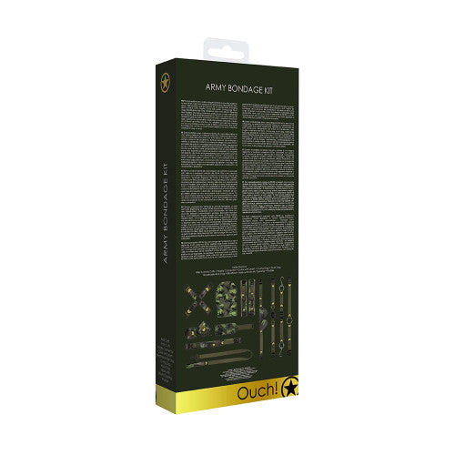 Command attention and obedience with this ultimate military-inspired bondage collection. Whether you’re a curious beginner or a seasoned dominant, the Ouch! Army Camouflage BDSM Kit has everything you need for an immersive power play experience. Fashionable, functional, and built for battle, this kit delivers full-body restraint, sensory deprivation, and total submission – all in one box.