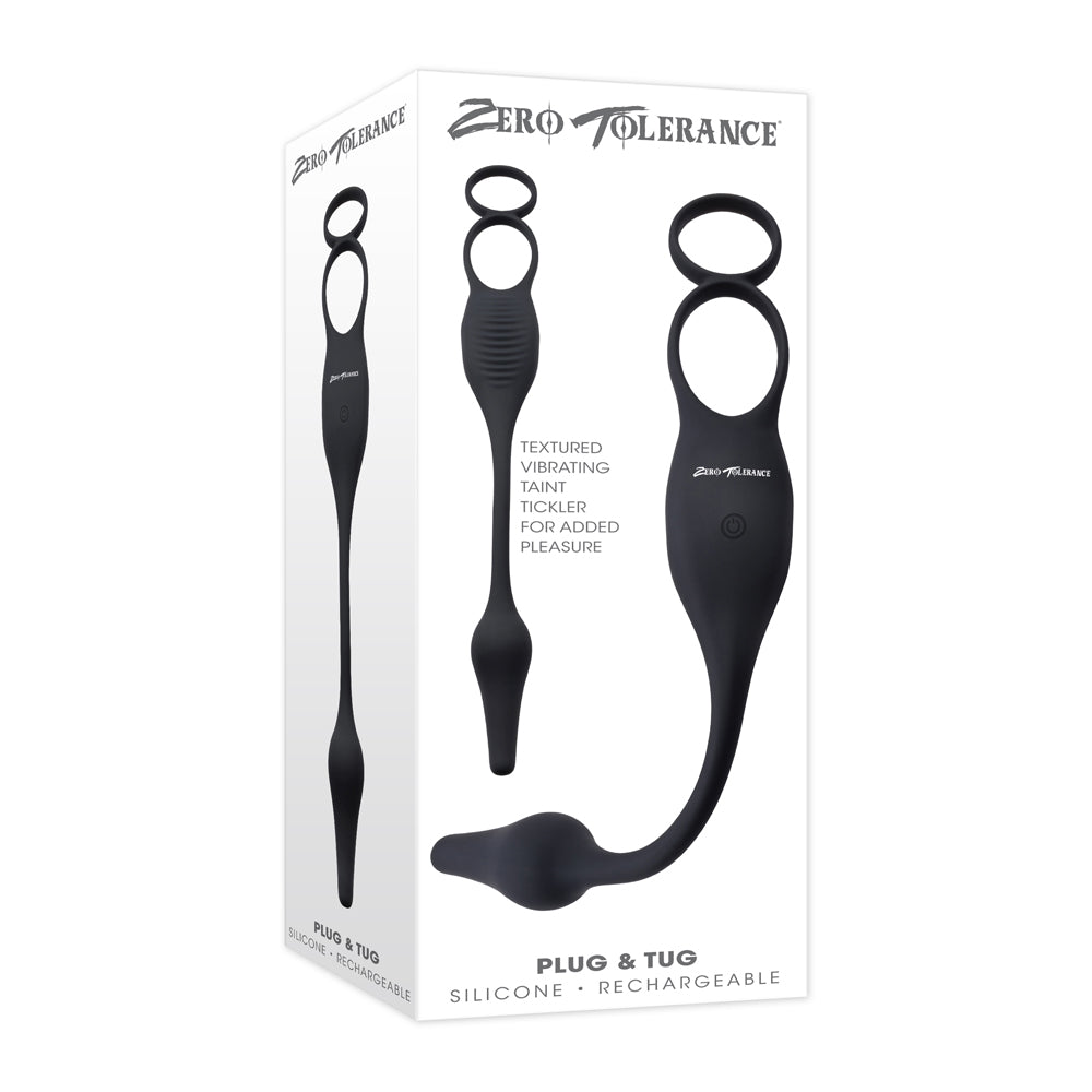 Experience two intense pleasure sensations at once with this vibrating plug and penis ring combo that delivers a delicious buzz to the perineum. Two stretchy silicone rings comfortably restrain the shafts and balls while a narrowly tapered plug offers flexibility for maximum ease. The interconnected cord ensures safe retrieval. Features: Height: 12.5", Depth: 1.54", Width: 1.54" Insertable length: 2.75", Insertable diameter: 1.09" 7 vibrating speeds & patterns 2 motors controlled together Made from phthalate & latex-free silicone USB rechargeable, cable included Waterproof & submersible