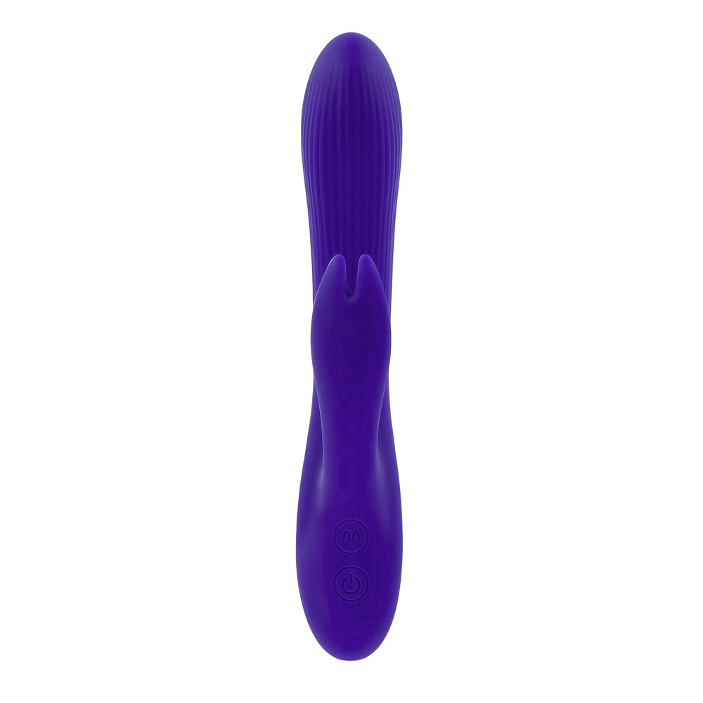 This big & powerful vibrating bunny stays where you put it with its textured, poseable main shaft and hard-working rabbit-eared stimulator. Features: 7 speeds & patterns in main shaft & rabbit stimulator Length: 8.25", Depth: 2.62", Width: 1.43" Insertable length: 5.25", insertable diameter: 1.43" Made from latex & phthalate-free silicone & ABS Rechargeable, USB cable included Waterproof