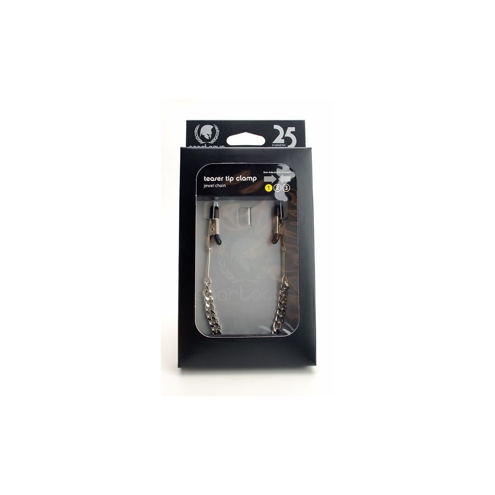 Endurance nipple clamps with tiny "gnatbite" style tips. Choose a simple link chain or elegant jewel chain. This clamp has the mildest hold and is non-adjustable.