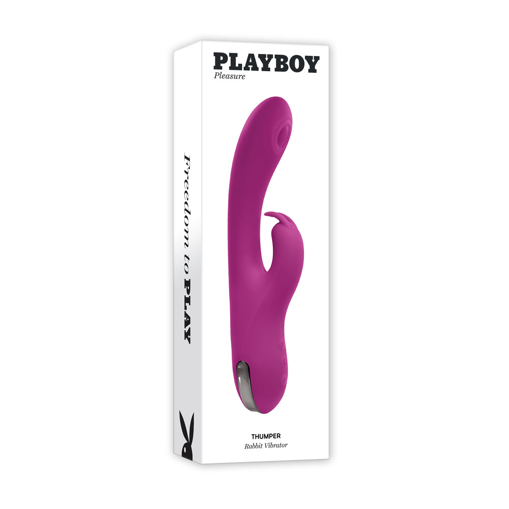A well of pleasure awaits with Thumper, a tapping Rabbit Vibrator made of velvet-smooth silicone. The vibrating shaft curves perfectly, ending in a head that taps against your G-Spot for concentrated stimulation. Experience the best of both worlds with the 10 powerful vibration speeds and rhythms of the external bunny stimulator. Panel Details: Play with me (key feature): Tapping Rabbit Vibrator Vibration: 10 vibrating speeds & rhythms in each shaft, 3 tapping speeds Material: Body-safe Silicone, Phthalate & latex free Waterproof & Submersible: Yes Warranty: Five years Rechargeable: USB cable included Size Specs: Height: 8.6", Depth: 2.39", Width: 1.69"