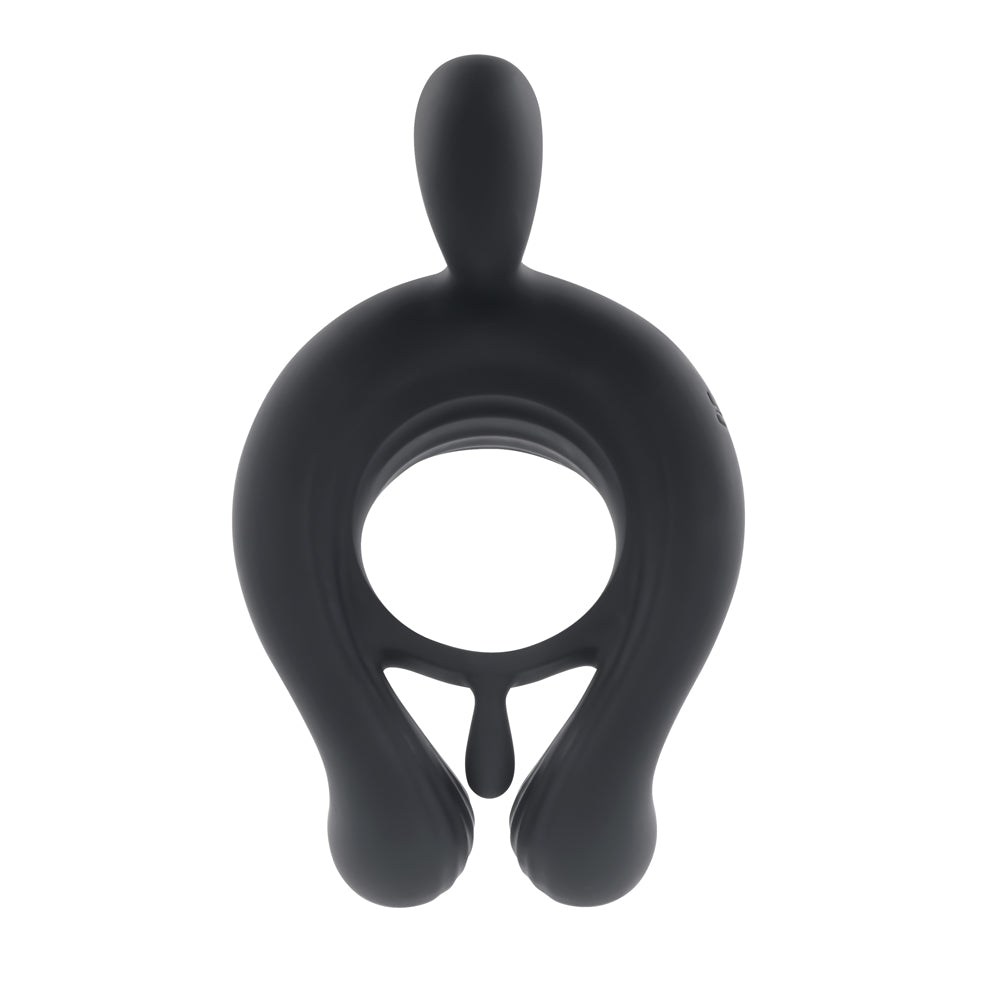 It's a Triple Play! This remote control operated Cock Ring with its three powerful vibrating motors proves that good things come in threes. The horseshoe shaped ring made of velvet-smooth silicone stimulates with 9 vibrating speeds and patterns, while its stretchy ring works to support longer, stronger erections. It's perfect for indulgent solo sessions and partner pleasure. Panel Details: Play with me (key feature): 3, 9-speed motors controlled together. 30' range remote Vibration: 9 speeds and rhythms Material: Body-safe Silicone, Phthalate & latex free Waterproof & Submersible: Yes Warranty: Five years Rechargeable: USB cable included Size Specs: Height: 4.37", Depth: 2.4", Width: 2.65"